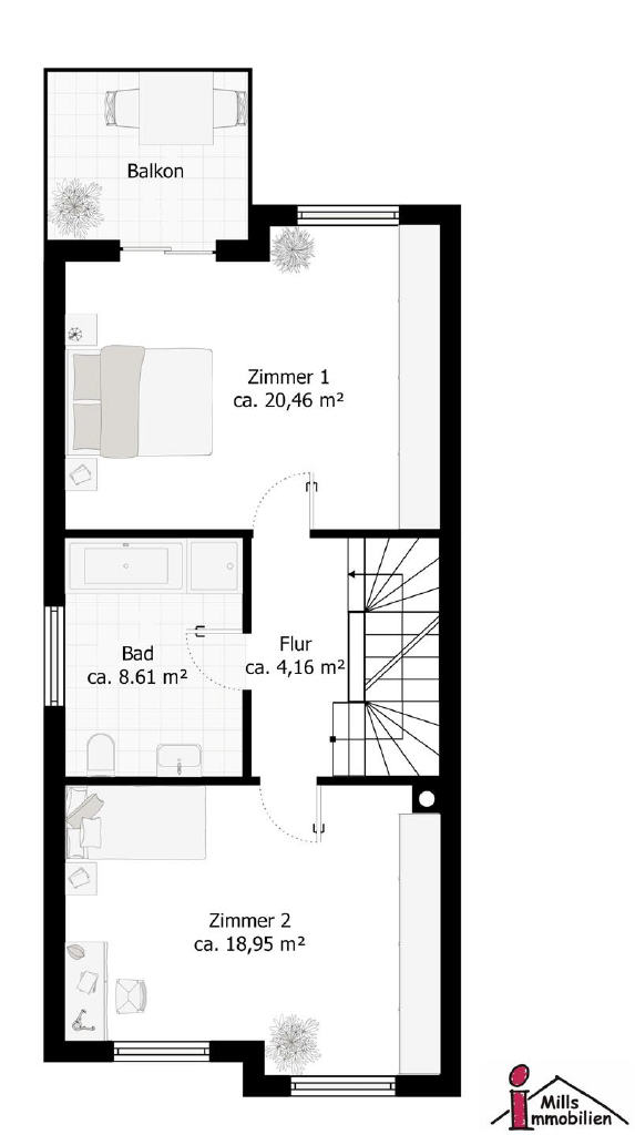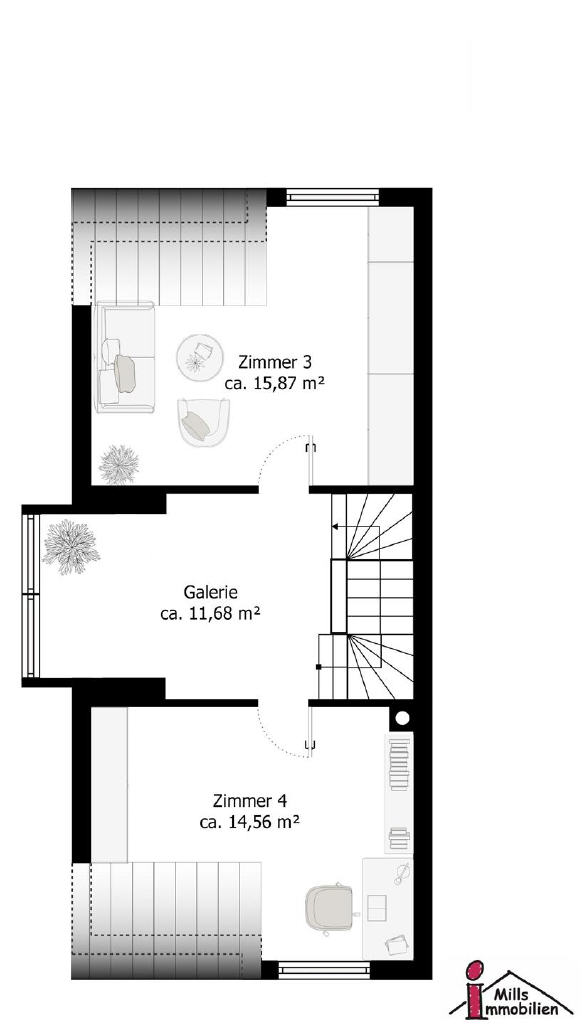 2 Schlafzimmer und lichtdurchflutende Galerie