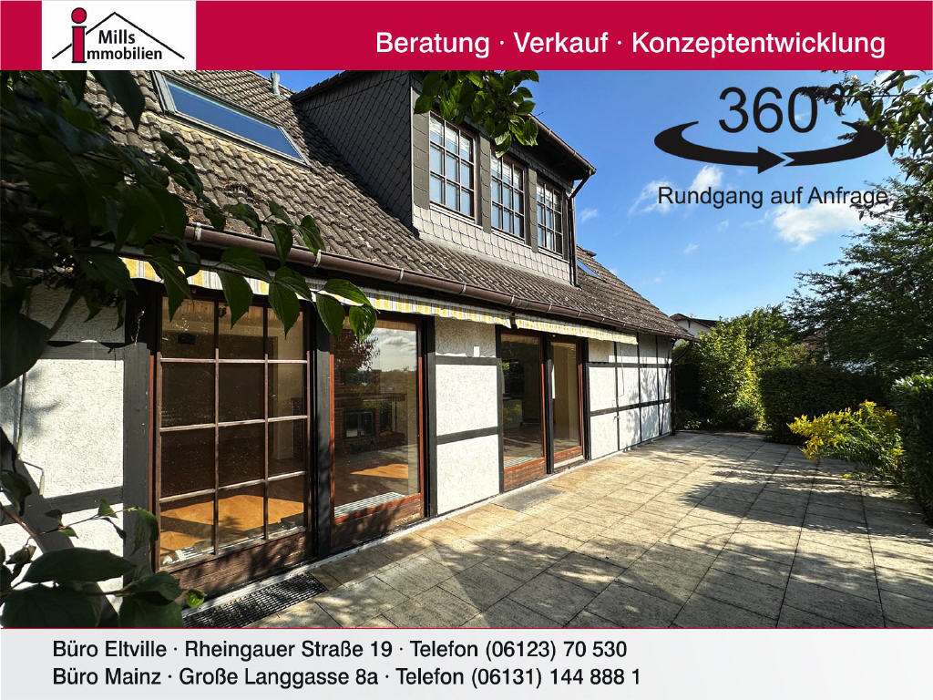 Freistehendes Architektenhaus (massiv gebaut) mit Rheinblick und großem Garten