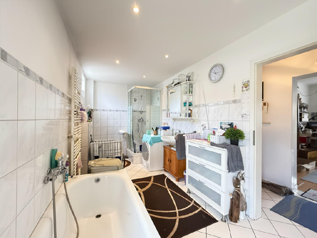 helles Wohnzimmer, Wohnküche, Schlafzimmer, Flur, großes Tageslicht-Bad mit Wanne und Dusche und