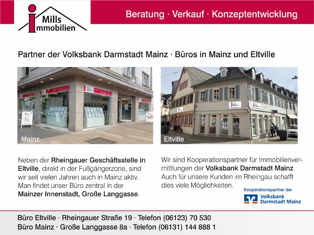 ins Rhein-Main-Gebiet, Fahrtzeit nach Mainz ca. 5 Min, nach Wiesbaden ca. 15 Min, zum